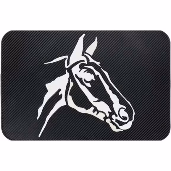 Dörrmatta Häst, gummi 95x63 cm. Dörrmatta med inlagt hästhuvud. Visa vem du är! En kraftig, rejäl dörrmatta av gummi som det är lätt att torka av sig på. Lätt att rengöra, bara att spola av eller borsta av.