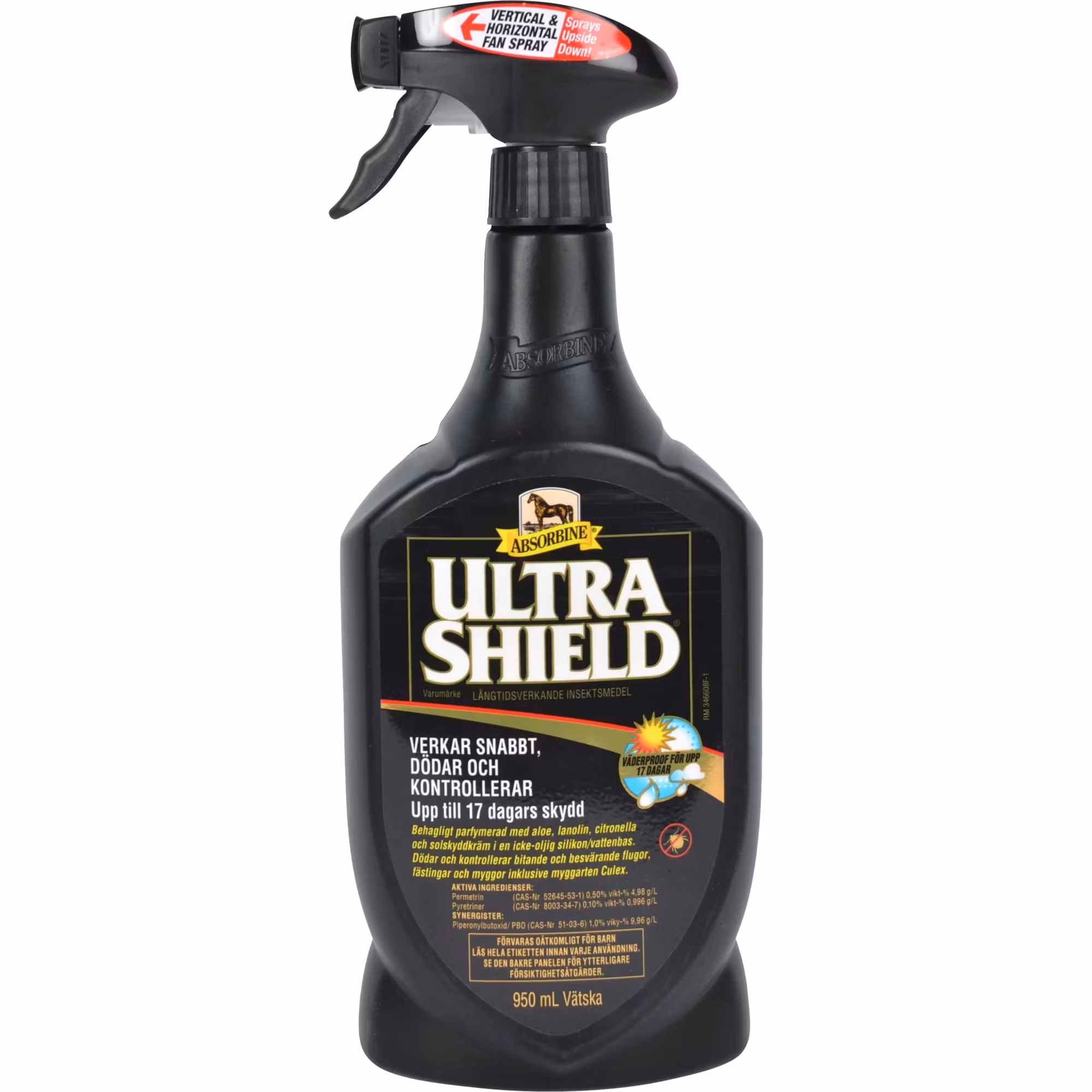 Flugmedlet används ej på föl under 12 veckor. Behandling med UltraShield medför 60 dagars slaktkarens. Undvik kontakt med ögon och känslig hud.